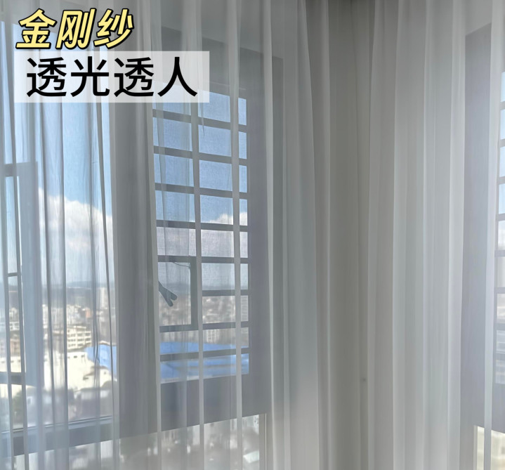 想要朦胧感的就选∶金刚纱,特点就是透光透人,给人一种朦胧美,防勾丝,透光性更加,养宠物的朋友可以选。