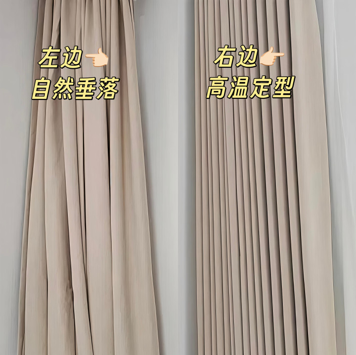 高温定型看个人需求吧,可做可不做,下图是对比图,自行参考,高温定型后就相当于自带记忆褶皱,拆洗后挂回去依旧保持造型。