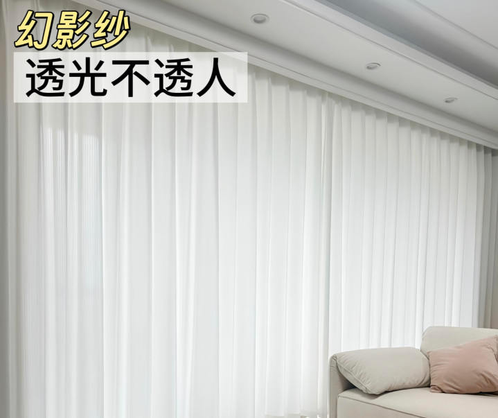 想要透光不透人的就选∶幻影纱,纹理感强,通透滤光,自然垂顺,特点就是透光不透人,不易勾丝起球。