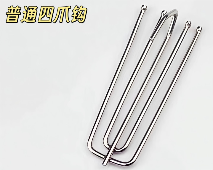 四爪钩∶承重力强,就是缺点比较明显,就是穿戴麻烦,需要时间,并且不能调节高度,金属材质还容易生锈。